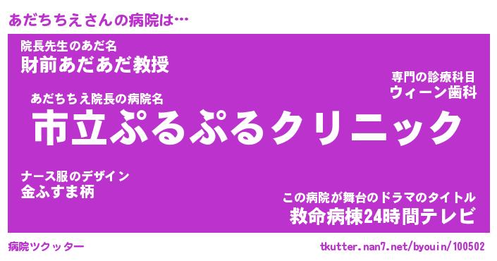 | ポケモン風あだ名 | 『アダチュウ』『アダチダネ』 |