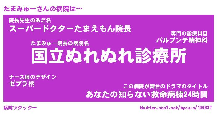 | 男性向けラノベタイトル風あだ名 | 『たまみゅーの憂鬱』 |
