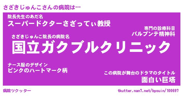 | 女子向けラノベタイトル風あだ名 | 『(仮)さざきじゅんこのやんごとなき事情』 |