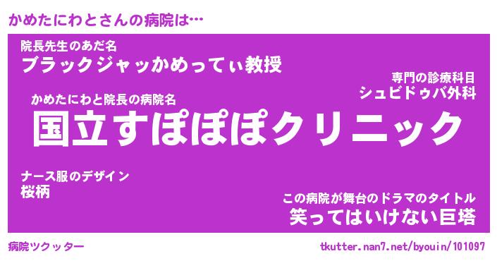 | 伝説のあだ名 | 『伝説のスナイパーかめたにわと』 |