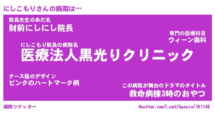 | 胡散臭い通販商品みたいなあだ名 | 『億万長者になれるブレスレット…その名も「にしこもり」』 |