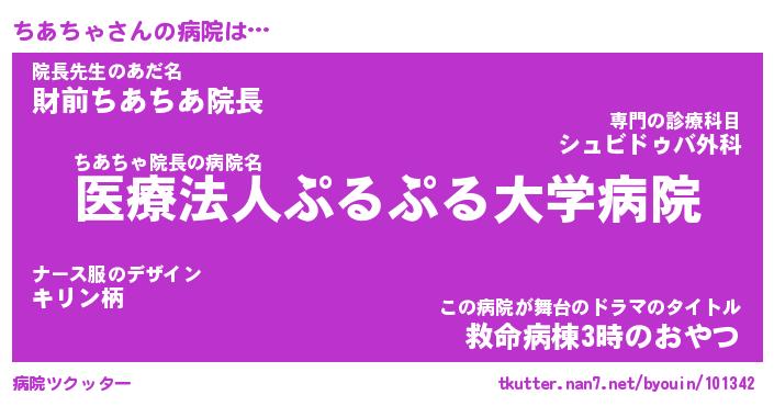 | 2回繰り返すあだ名 | 『ちあちあ』『ちちああ』『くねくね』 |