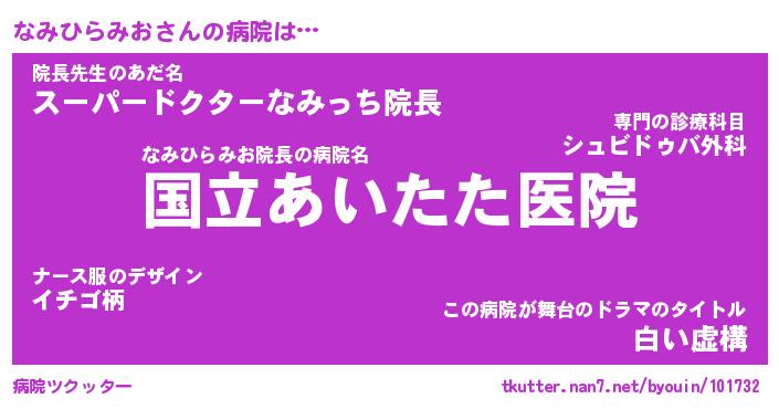 | 伝説のあだ名 | 『伝説のスナイパーなみひらみお』 |