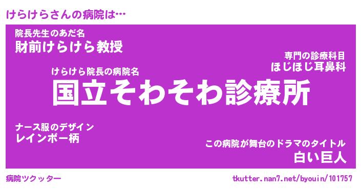 | 胡散臭い通販商品みたいなあだ名 | 『必ず成功するブレスレット…その名も「けらけら」』 |
