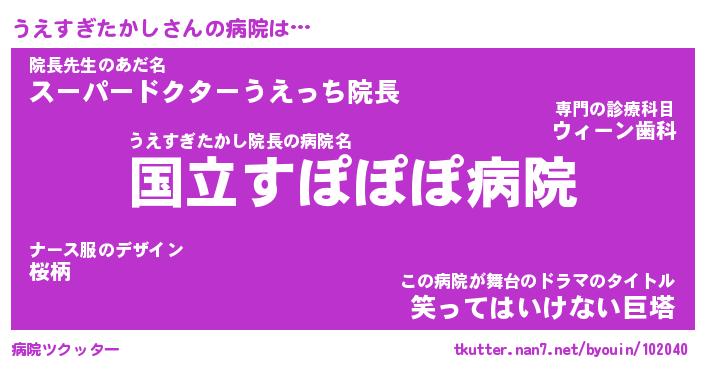 | 伝説のあだ名 | 『伝説のスナイパーうえすぎたかし』 |