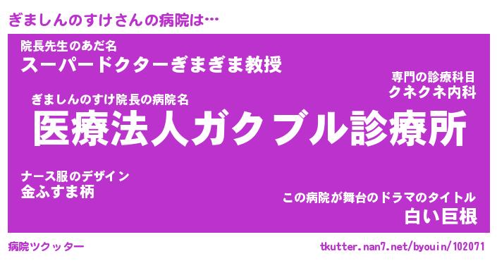 | ピコ太郎風あだ名 | 『ギコ史郎』『ピギ三郎』『ギマ一郎』 |