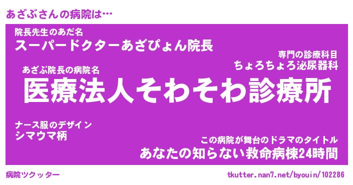 | 意味不明あだ名 | 『ペロリンあざぶ』『あざぶフォーエバー』 |