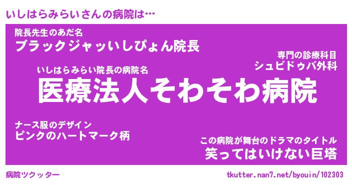 | 胡散臭い通販商品みたいなあだ名 | 『億万長者になれる水晶球…その名も「いしはらみらい」』 |