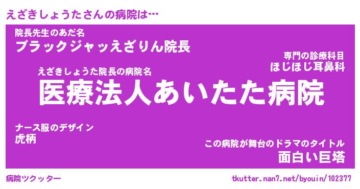 | 肩書あだ名 | 『えざきしょうた御曹司』 |