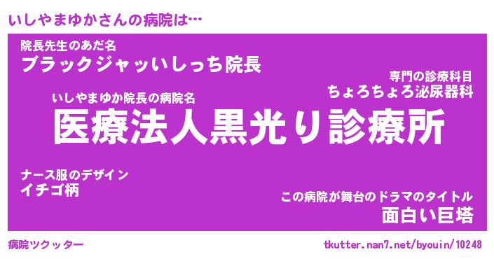 | ヘコむあだ名 | 『いしにー』『豆乳』『いしっちょ』 |