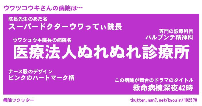| ツイッター | ウワツコウキさんのツイッターID『fukuyoka_kun』 |