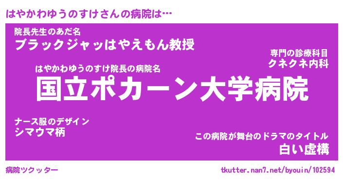 | 男性向けラノベタイトル風あだ名 | 『はやかわゆうのすけの憂鬱』 |