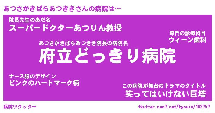 | ヒーロー風カッコイイあだ名 | 『スーパーアツサカキバラアツキキ』 |