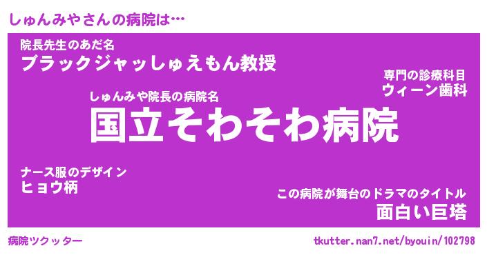 | 恥ずかしいあだ名 | 『プリティーしゅんみや』『しゅっちょ』 |