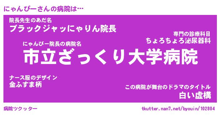 | 男性向けラノベタイトル風あだ名 | 『にゃんぴーの憂鬱』 |