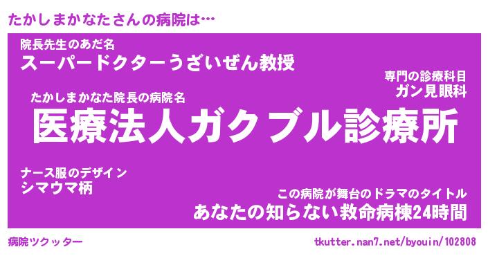 | 男性向けラノベタイトル風あだ名 | 『タカシマカナタアートオンライン』 |