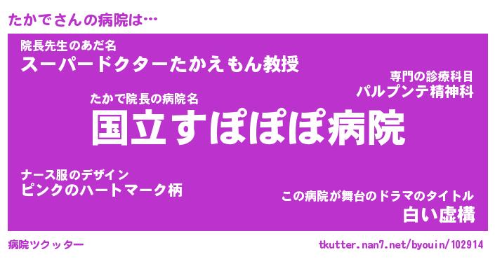 | 意味不明あだ名 | 『ペロリンたかで』『たかでフォーエバー』 |