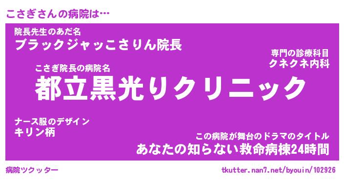 | 意味不明あだ名 | 『ペロリンこさぎ』『こさぎフォーエバー』 |