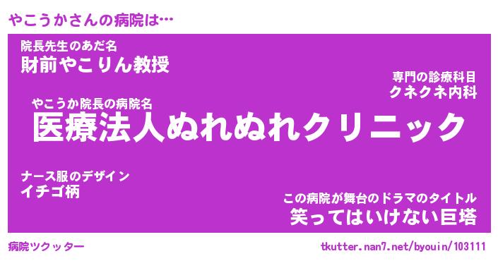 | 2回繰り返すあだ名 | 『やこやこ』『ややここ』『ぬめぬめ』 |