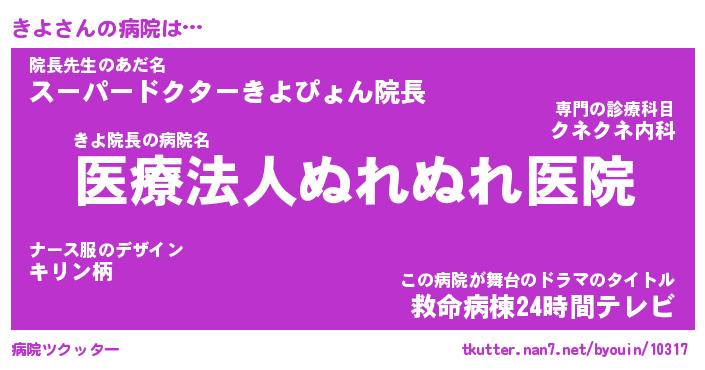| 2回繰り返すあだ名 | 『きよきよ』『ききよよ』『ぬめぬめ』 |