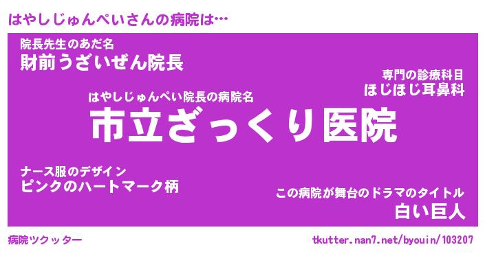 | 男性向けラノベタイトル風あだ名 | 『はやしじゅんぺいの憂鬱』 |