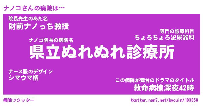 | 意味不明あだ名 | 『ペロリンナノコ』『ナノコフォーエバー』 |
