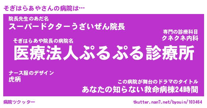 | 恥ずかしいあだ名 | 『プリティーそぎはらあや』『そぎっちょ』 |