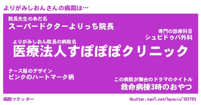 | 恥ずかしいあだ名 | 『プリティーよりがみしおん』『よりちん』 |