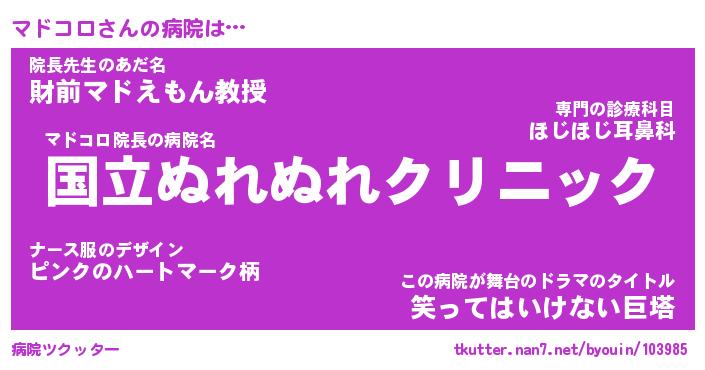 | 意味不明あだ名 | 『ペロリンマドコロ』『永久保存マドコロ』 |