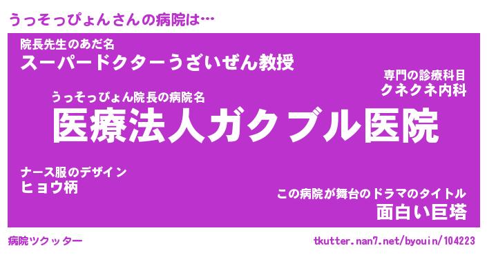 | ピコ太郎風あだ名 | 『ウコ史郎』『ピウ十郎』『ウッ二郎』 |