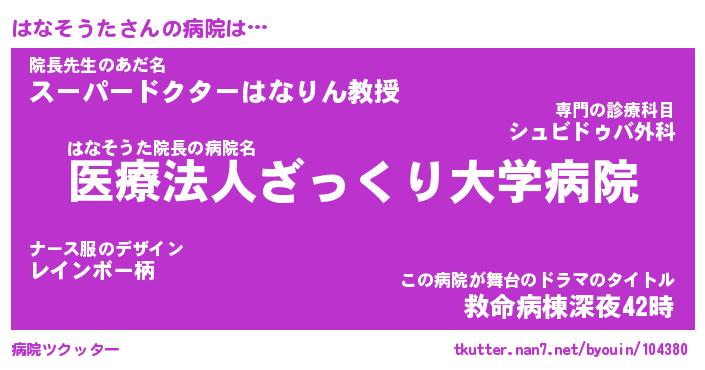 | 胡散臭い通販商品みたいなあだ名 | 『モテモテ間違いなし霊験あらたかなお札…その名も「はなそうた」』 |
