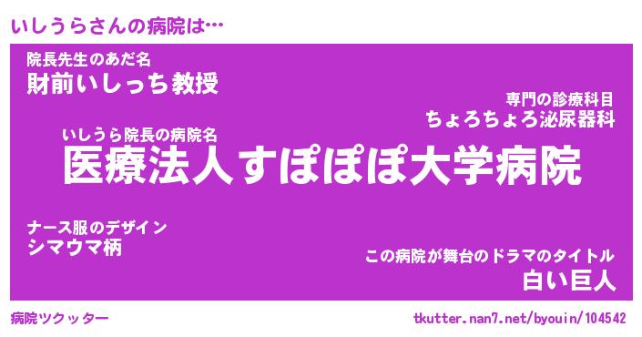 | ヘコむあだ名 | 『いしもー』『なまこ酢』『いし太郎』 |