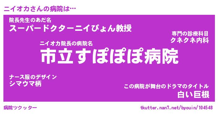| 男性向けラノベタイトル風あだ名 | 『ニイオカの憂鬱』 |