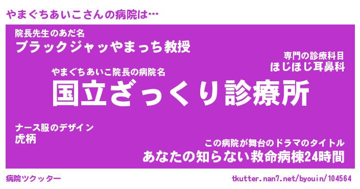 | 伝説のあだ名 | 『伝説のスナイパーやまぐちあいこ』 |