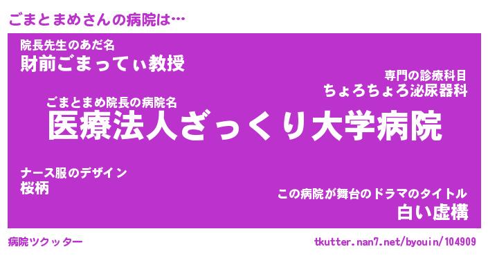 | 自動車の名前っぽいあだ名 | 『ゴマティマ』『ゴスラー』『ゴント』 |