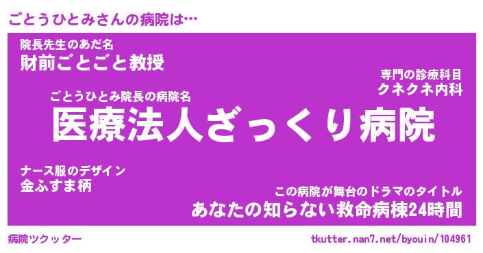 | 肩書あだ名 | 『ごとうひとみ御曹司』 |