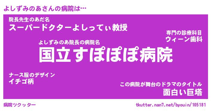 | 伝説のあだ名 | 『伝説のスナイパーよしずみのあ』 |