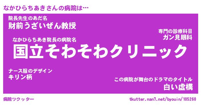 | 胡散臭い通販商品みたいなあだ名 | 『必ず成功するブレスレット…その名も「なかひらちあき」』 |