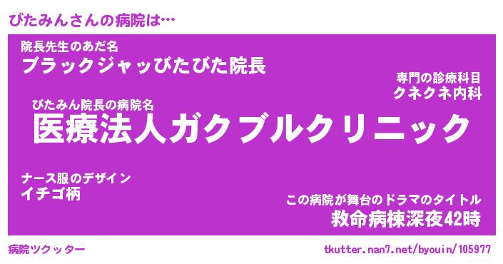 | ヘコむあだ名 | 『びたにゅー』『なまこ酢』 |