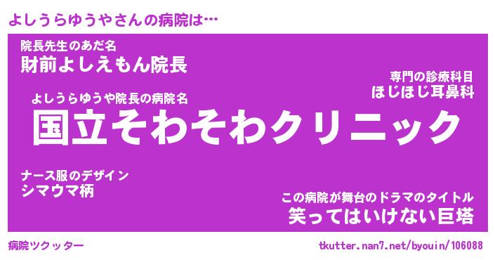 | ポケモン風あだ名 | 『ヨシチュウ』『ヨシウダネ』 |