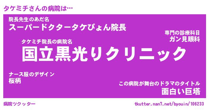 | ヘコむあだ名 | 『タケふぇ~』『つくし』『タケっ子』 |