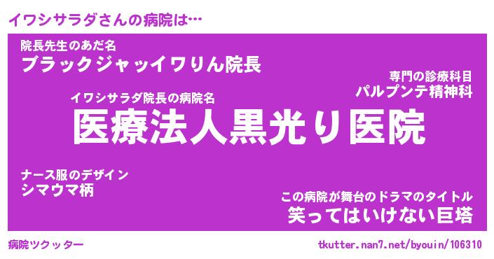 | ヒーロー風カッコイイあだ名 | 『スーパーイワシサラダ』『魔戒騎士イワ』 |