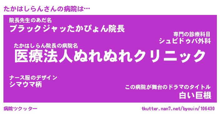| ポケモン風あだ名 | 『タカチュウ』『タカハダネ』 |