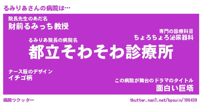 | 意味不明あだ名 | 『ペロリンるみりあ』『永久保存るみりあ』 |