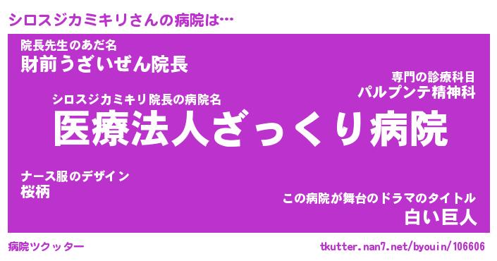 | 2回繰り返すあだ名 | 『シロシロ』『シシロロ』『ぬめぬめ』 |