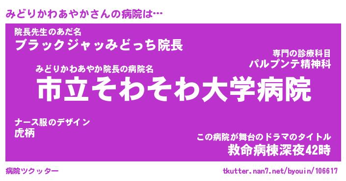 | ヒーロー風カッコイイあだ名 | 『スーパーミドリカワアヤカ』 |