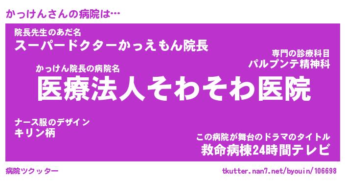 | 意味不明あだ名 | 『ペロリンかっけん』『永久保存かっけん』 |