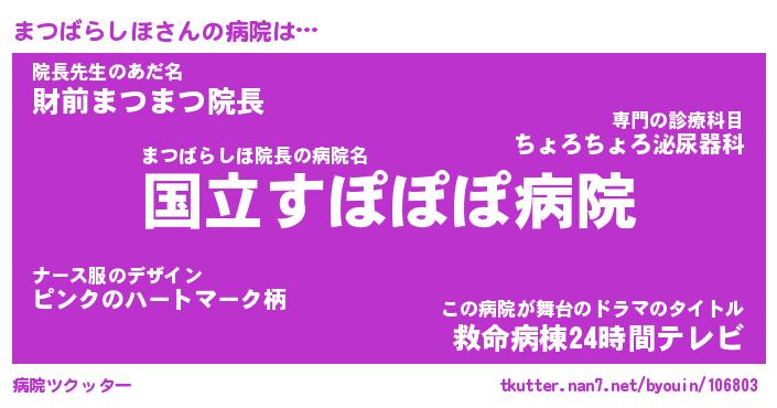 | 伝説のあだ名 | 『伝説のスナイパーまつばらしほ』 |