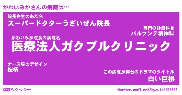 | ヒーロー風カッコイイあだ名 | 『スーパーカワイミカ』『黄金騎士カワ』 |