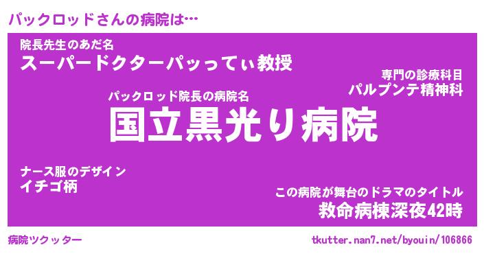 | 男性向けラノベタイトル風あだ名 | 『パックロッドの憂鬱』 |